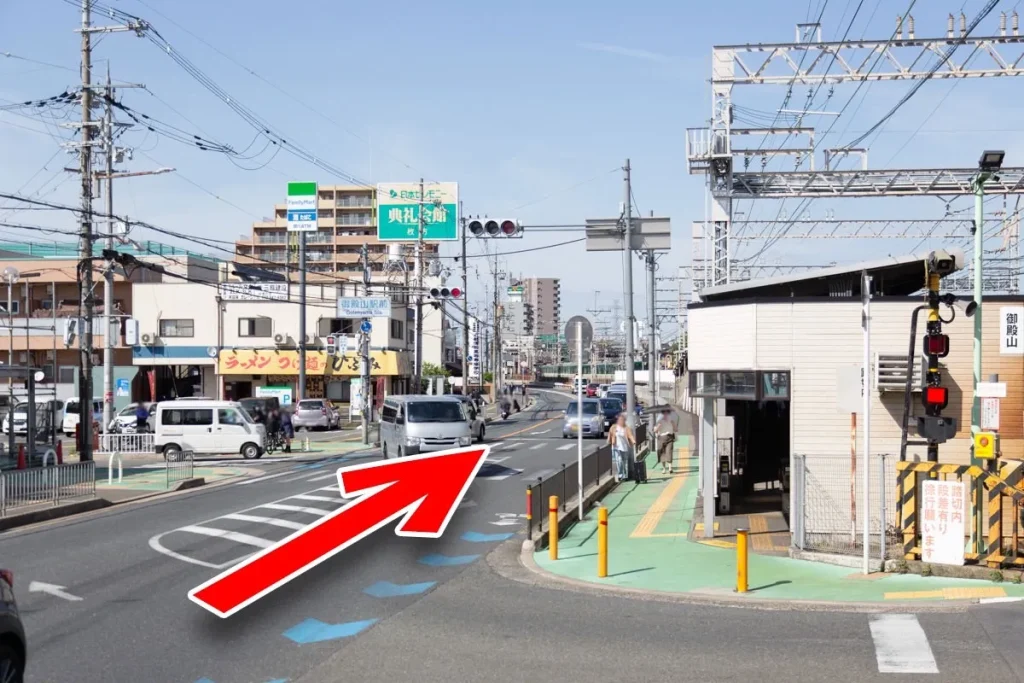 京阪御殿山駅の西出口から、旧1号線(府道13号線)を京都方面へ進みます。