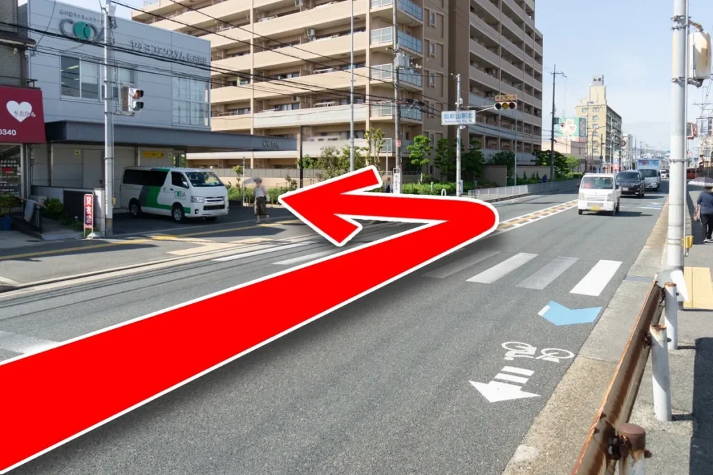 道なりに進み、押しボタン信号のある『御殿山駅北』の角を左へ曲がります。